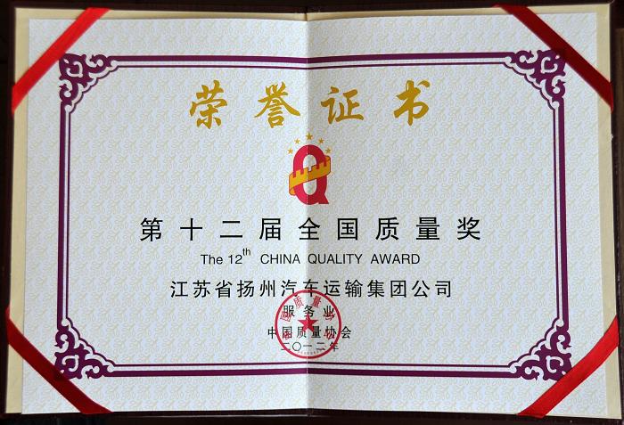 公司榮獲第十二屆全國質(zhì)量獎(jiǎng)