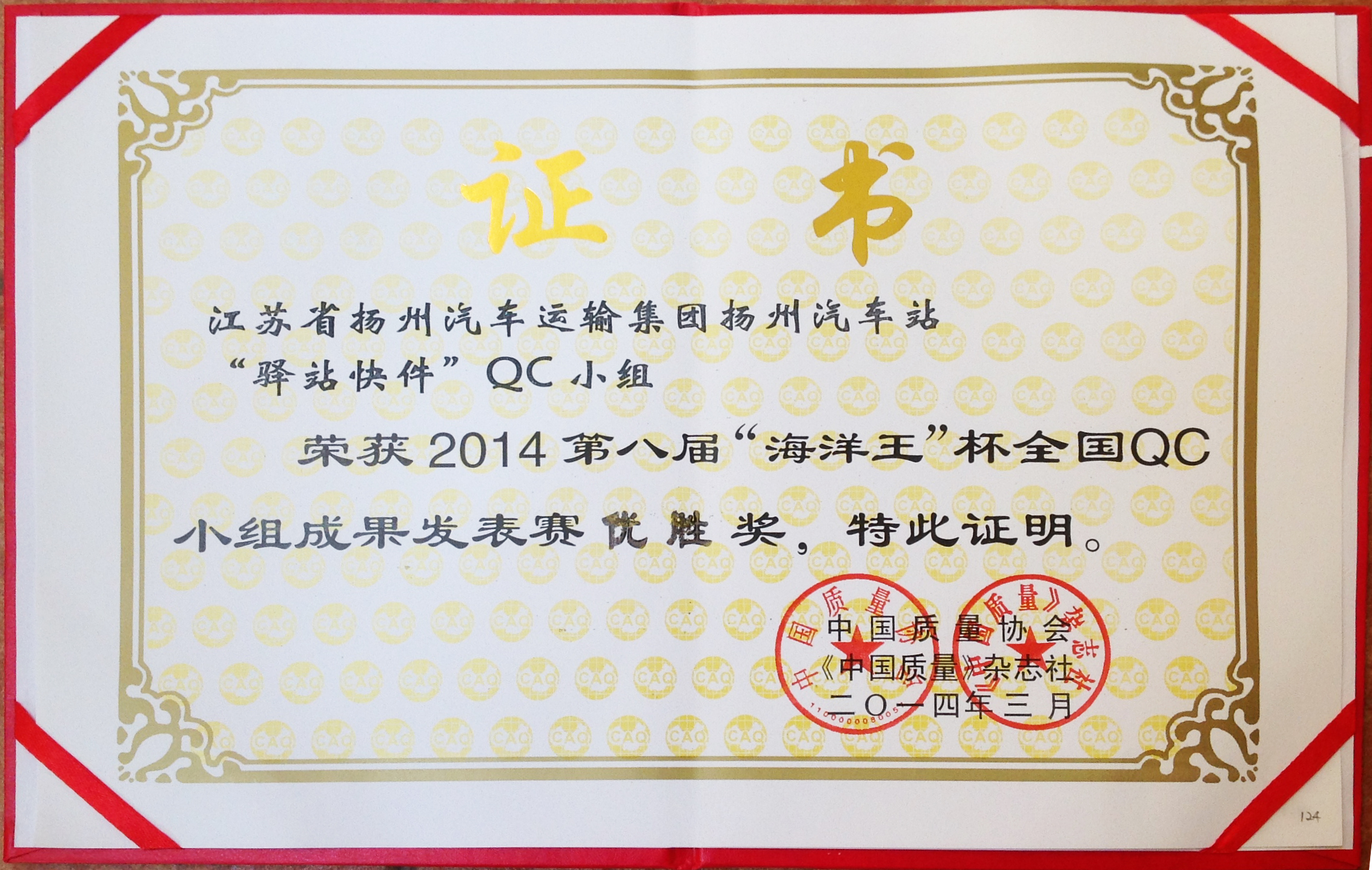 “海洋王”杯QC小組發(fā)表賽是一項(xiàng)全國(guó)性比賽,今年共有300多個(gè)成果報(bào)名,經(jīng)過(guò)層層選拔,來(lái)自全國(guó)各地QC小組代表500余人,197個(gè)成果參加現(xiàn)場(chǎng)發(fā)布。經(jīng)過(guò)5天緊張的成果發(fā)布,我司揚(yáng)州汽車站“驛站快件”QC小組成員余妍、潘潔發(fā)表的《降低到達(dá)庫(kù)收發(fā)貨的誤差率》在激烈的角逐中脫穎而出,獲得第八屆“海洋王”杯最高榮譽(yù)——優(yōu)勝獎(jiǎng),和其他47個(gè)成果一起被直接推薦為2014年度全國(guó)優(yōu)秀QC小組。