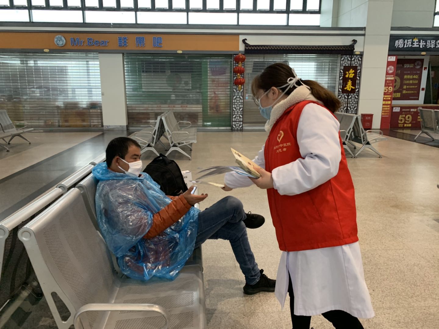 2月25日揚州站復工復產(chǎn)的第二天,揚州市中醫(yī)院抗“疫”小分隊為揚州汽車站里的旅客們和堅守在一線崗位的職工送來了抗疫藥品和義診服務(wù)。