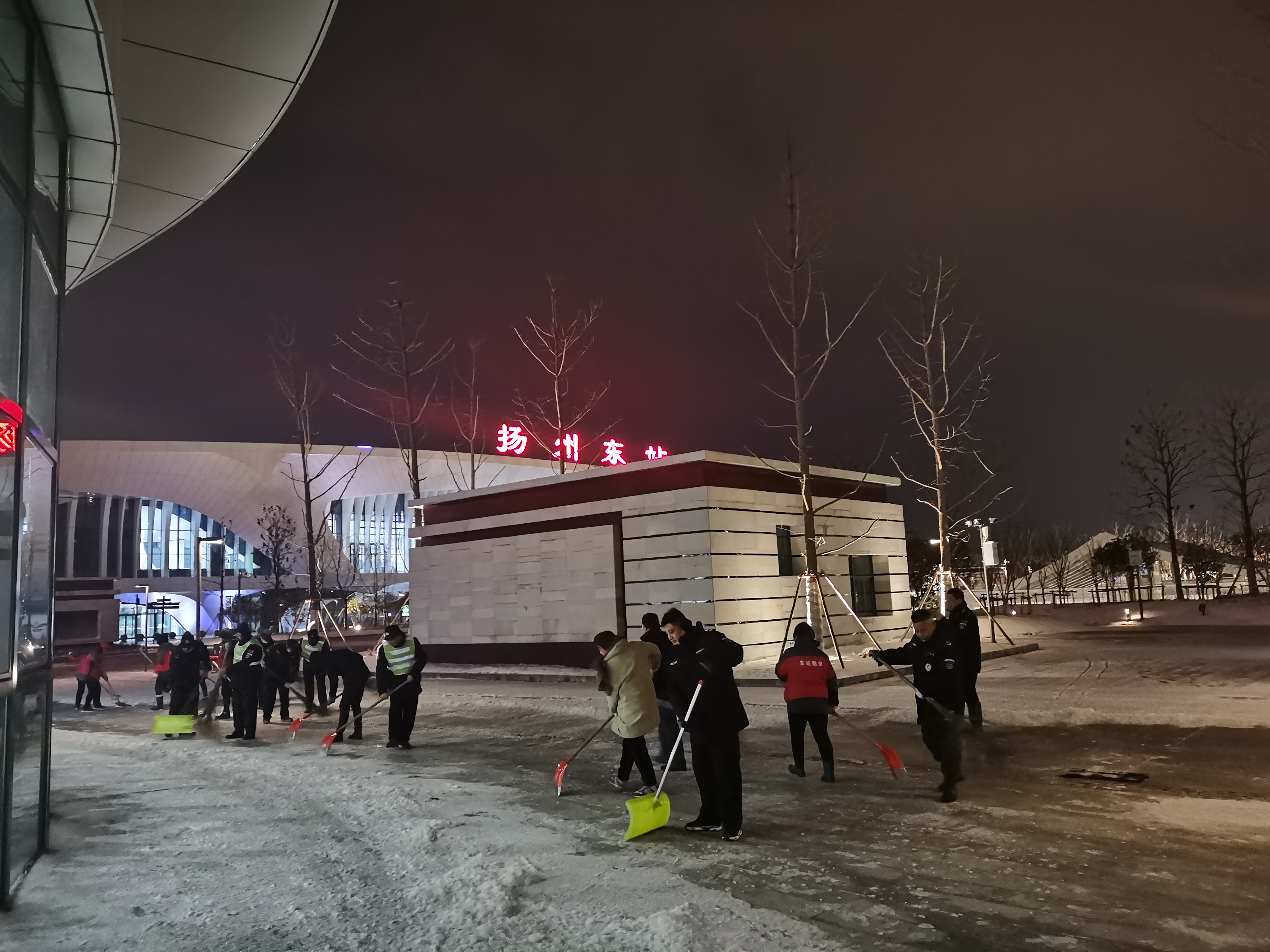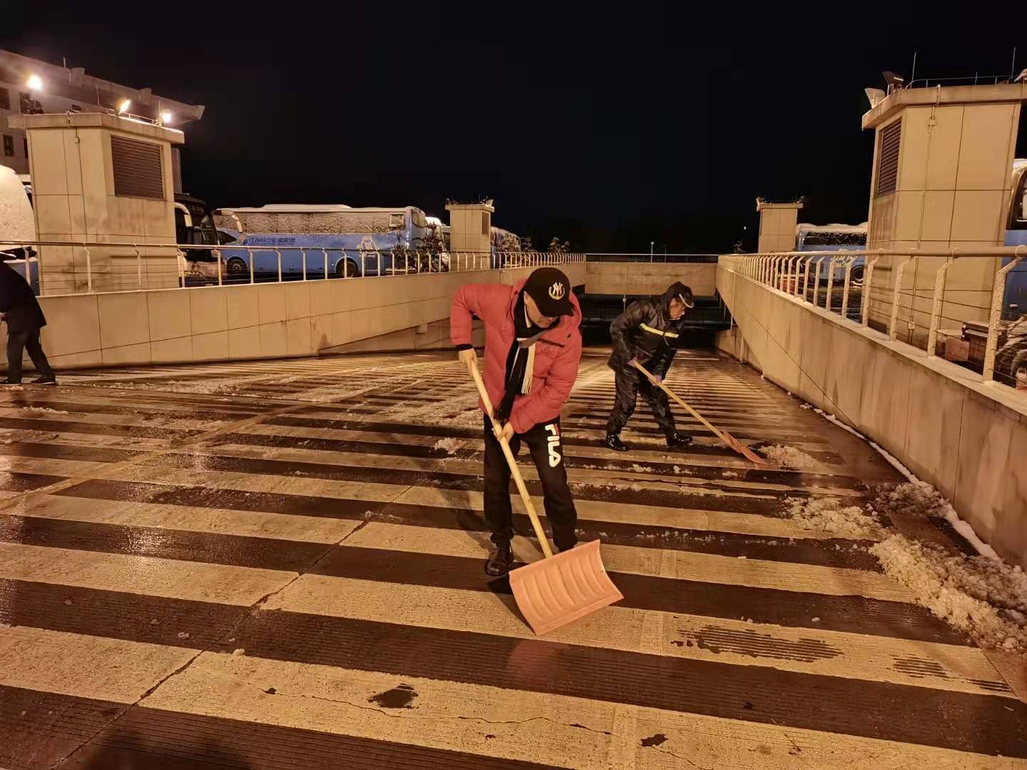 29日晚,車站連夜鏟雪除冰