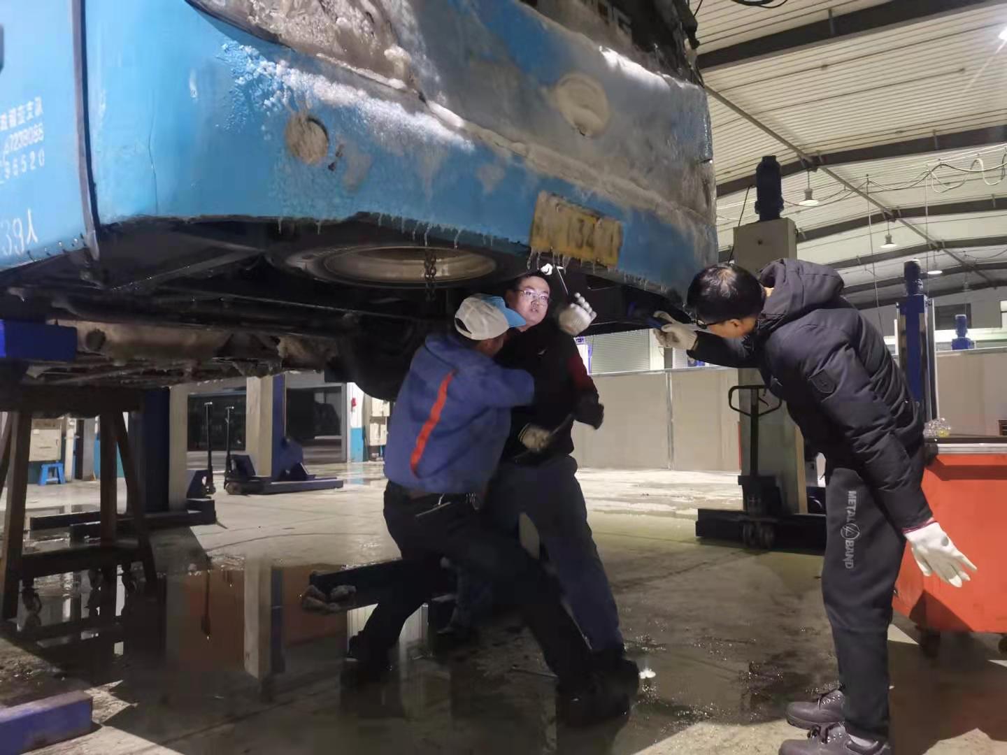 29日深夜修理廠對(duì)車輛進(jìn)行搶修,揚(yáng)汽出租的黨和職工清除場地冰凍積雪,及時(shí)消除安全隱患;在大家的努力下,教培中心科目二考場已無積雪積冰,車輛均已調(diào)試完好。